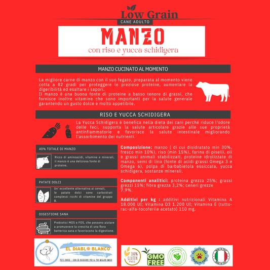 Cibo Naturale Monoproteico al Manzo – con Riso yucca schidigera🥩🌿