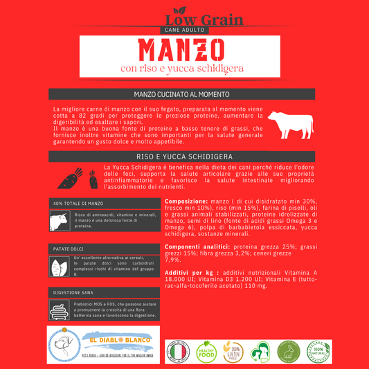 Cibo Naturale Monoproteico al Manzo – con Riso yucca schidigera🥩🌿