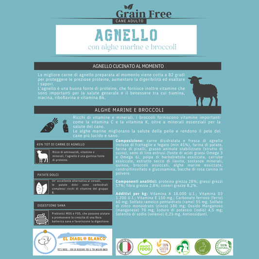 Cibo Naturale Monoproteico Agnello con Alghe marine e Broccoli 🐑🌿
