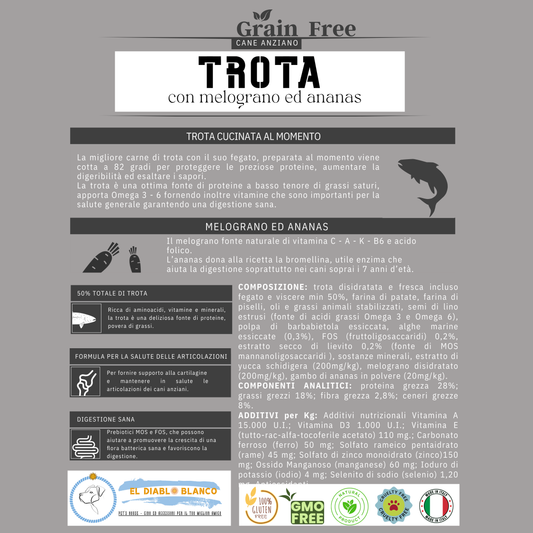 Cibo Naturale Monoproteico alla Trota – Senza Cereali, con Melograno e Ananas🍍