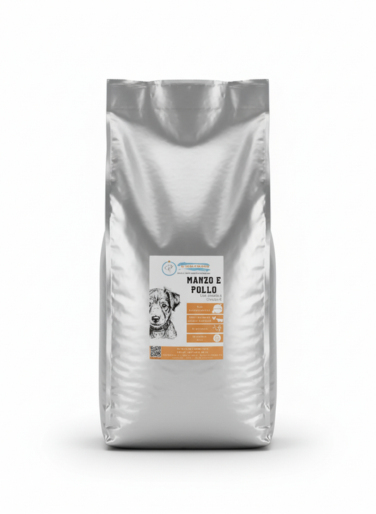 Cibo Naturale Bi-proteico al Manzo e Pollo – con Cicoria e Omega3/6🥕🥦